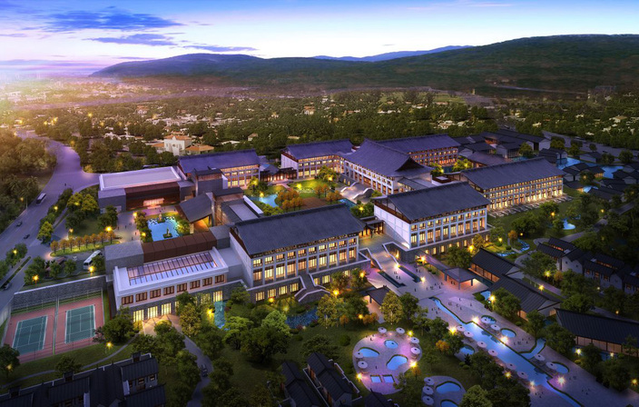 項目由新加坡悅榕度假酒店集團精心營造并管理,主要建設內容包括酒店、國賓館、水療中心、庭院式客房、商業零售以及停車場等,客房總數為499間。總建筑面積110,000平方米,其中地上建筑面積78,000平方米,地下建筑面積32,000平方米 。