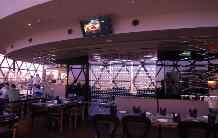 東方明珠空中旋轉餐廳位于浦東新區世紀大道1號東方明珠電視塔267米上。地處陸家嘴金融中心,毗鄰黃浦江,與外灘隔江相望。 該餐廳是亞洲最高的旋轉自助餐廳,其營業面積為1500平方米,可同時容納350位來賓用餐。它以得天獨厚的景觀優勢、不同凡響的飲食文化、賓至如歸的溫馨服務,傲立于上海之巔。